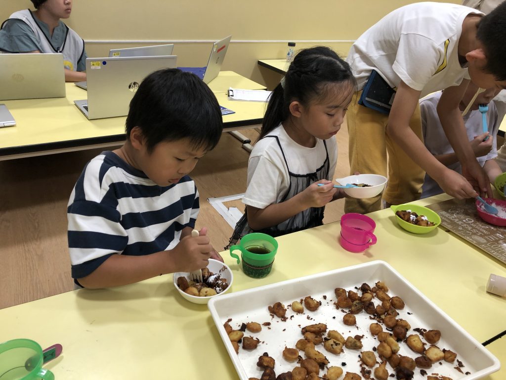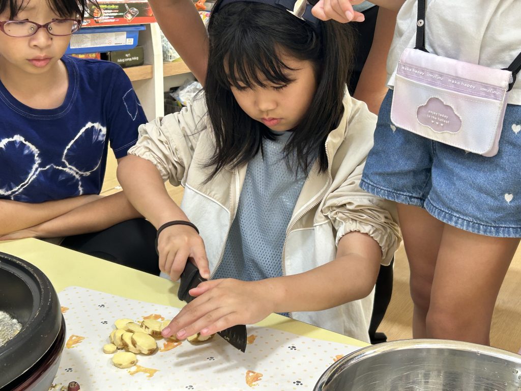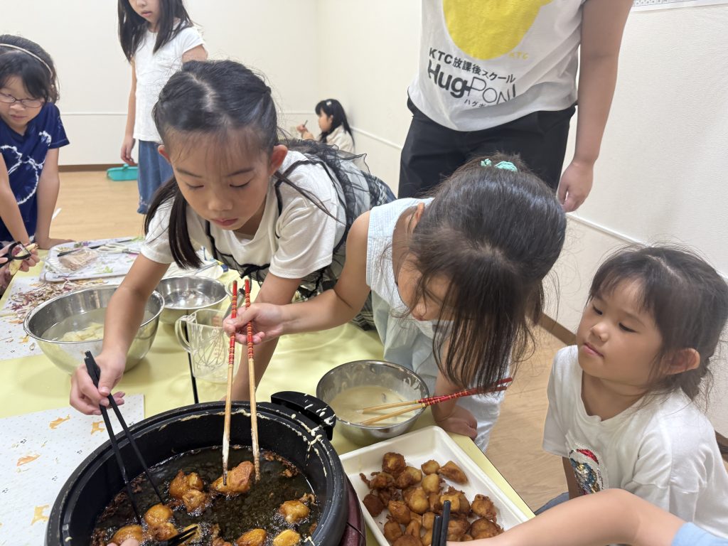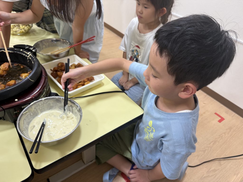 低学年の子達は生地を混ぜて、揚げる作業を主にしてもらいました!