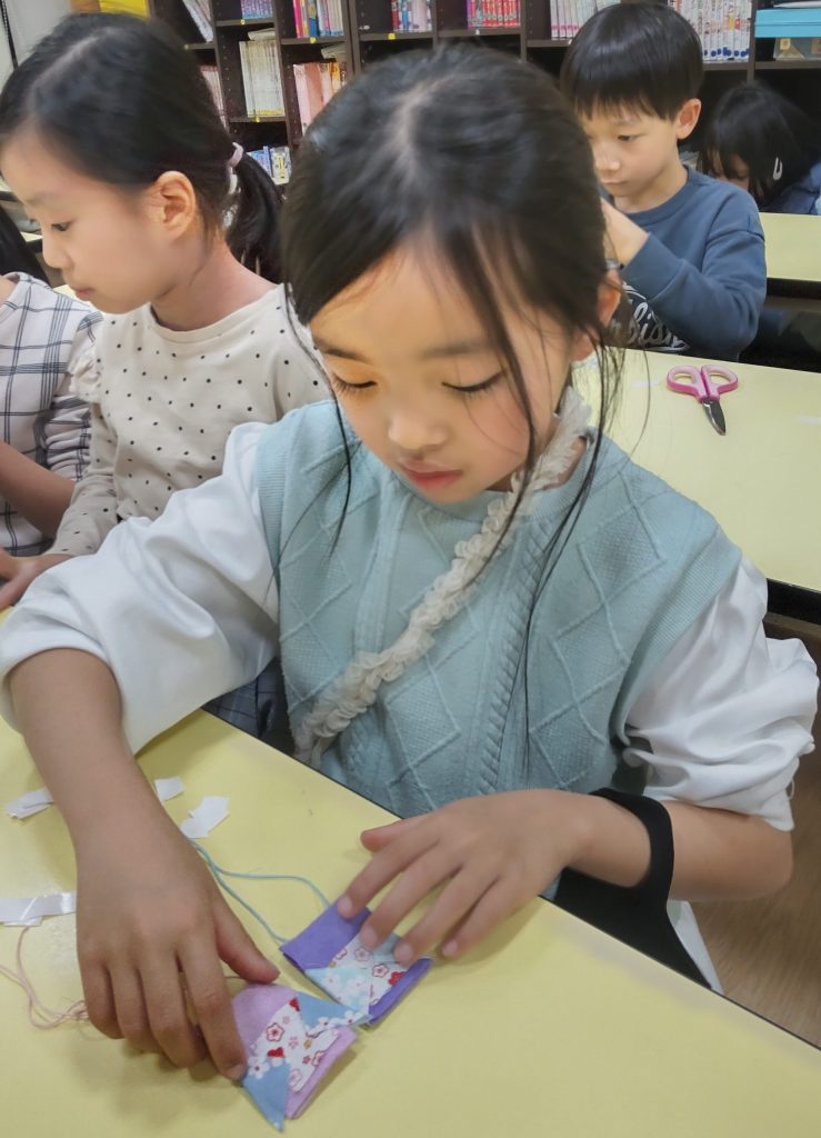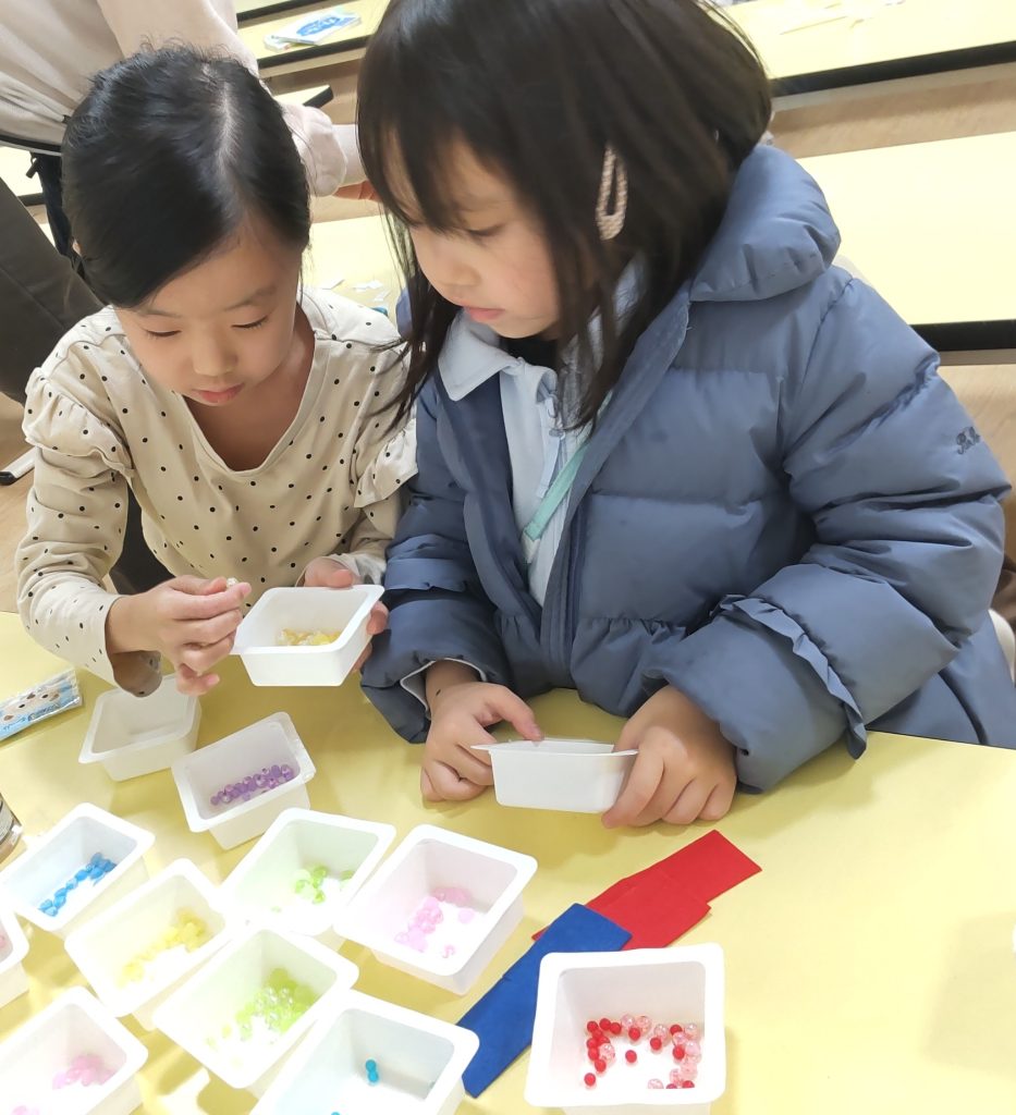 今回も新年のイベントにふさわしく「お守り」をフクロウの形にして、一人二個作りました。体部分はフェルトで、服や羽部分は布を使用します。色・柄を多数準備して、オリジナルの作品が作れるようにしました。目は大きなボタンの上に目玉シールを貼ってボンドでつけます。お花の飾りもボンドでつけて、紐に好みのビーズを組み合わせて通して結びます。フェルトと布に両面テープを貼り、形にする工程は少し難しいところもあり、羽を付けるときはどうするとフクロウの羽のようになるかイメージしたり、ミンナ工夫して思い思いのフクロウを二種類作り上げました✨作品はどれも個性豊かで一つとして同じものはない、特別な福守りができて、ミンナとっても嬉しそうでした🤗