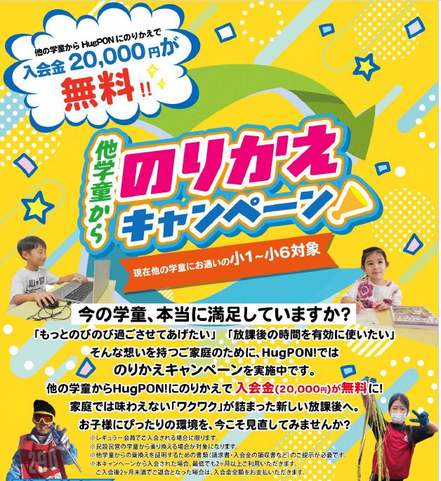 現在ハグポンでは、他の民間学童保育から当施設へ乗り換えをご検討中の方を対象に、